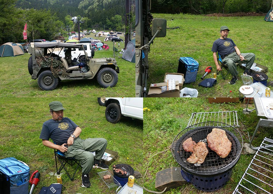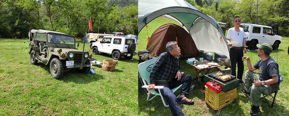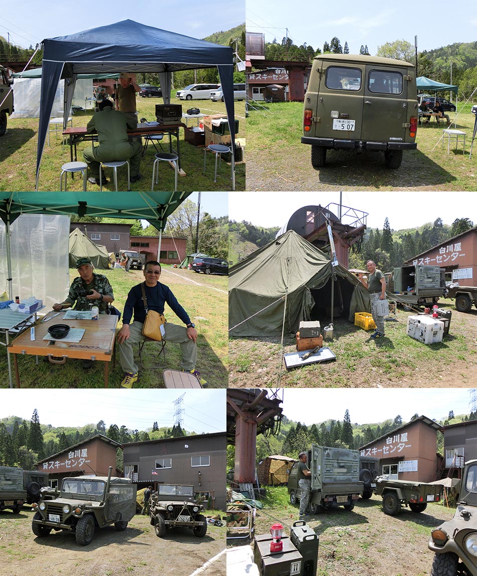 | 会場へ付いて、ウッディパル余呉の事務所でお金を払ってから赤子山スキー場内へ 一般客多く、どこに誰がいるのか不明、ゲレンデ上の方にサンドベージュのハンビー発見!!この車両は 大西氏の友人が買ったと言う車両と思ってそちらへ移動。その通りだった。 その奥で、当方は泊まる事に、荷物降ろして昼飯の用意。いろいろやっていると昼前に・・・平和堂で買ってきた 肉を焼きビールを飲んでいると、大西宅で焼いた美味しいお好み焼きの差し入れがありました。 それを頂きながらの談笑???内容がなぜかしら年金の話。そして話題が変わっても健康の話・・ やっぱりみんな年寄りになった証拠ですね。あと何回おあいできるでしょうか? |