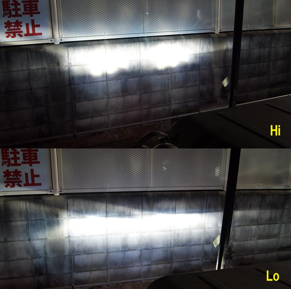 夜になって近くのスーパーのガレージで簡易的に光軸を合わせて見た。