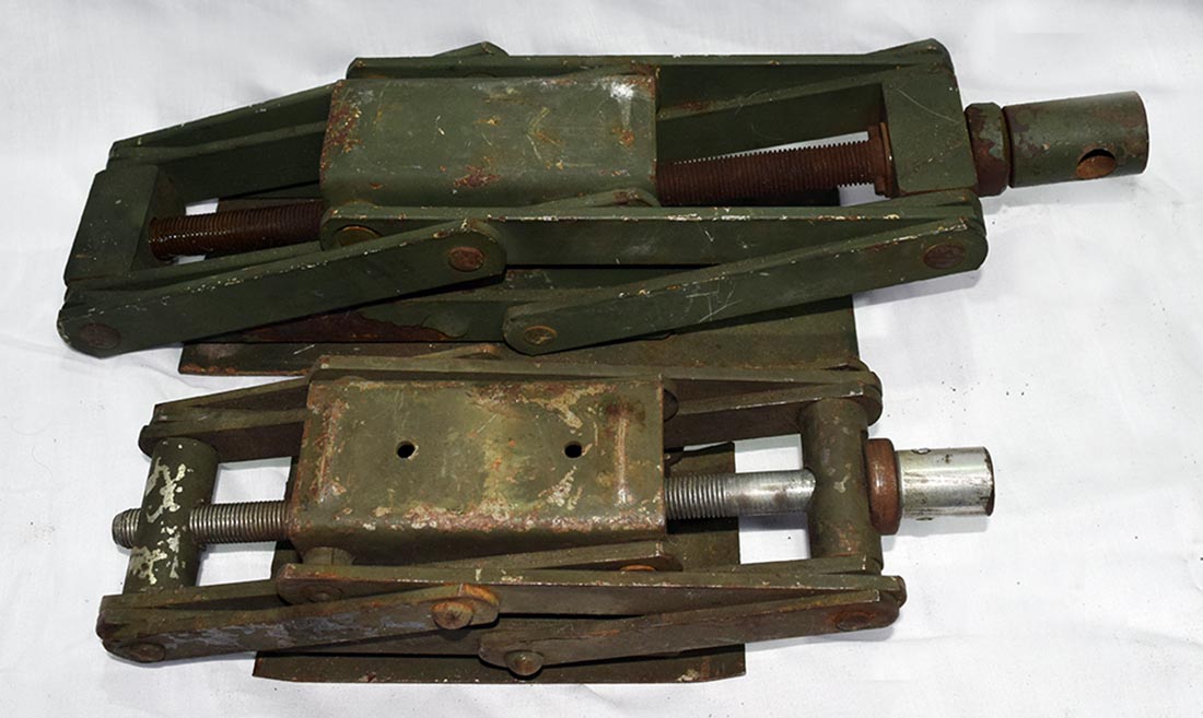 ガレージを探してみると一回り大きな軍用ジャッキを発見、(画像上側)