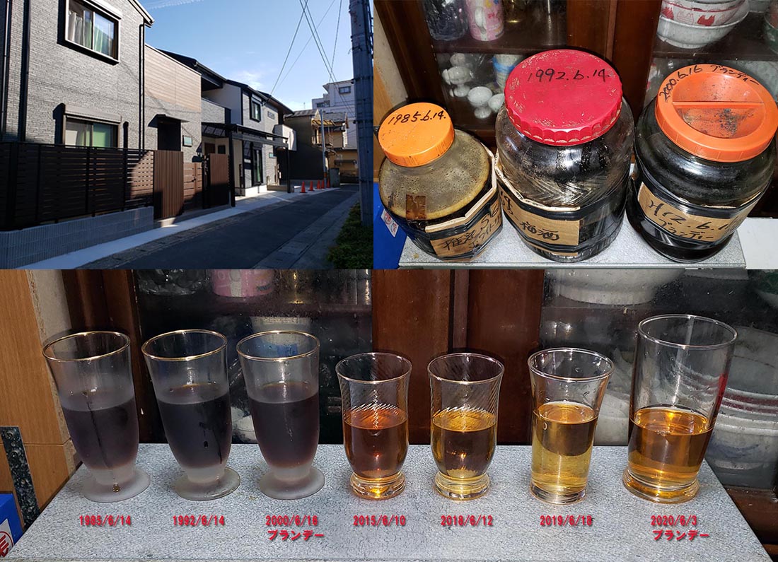 そして、当方宅にも今までにつけていた梅酒があったので、全部並べて試飲してみた。味は、今日実家で見つけた古い梅酒、次元が違う味、