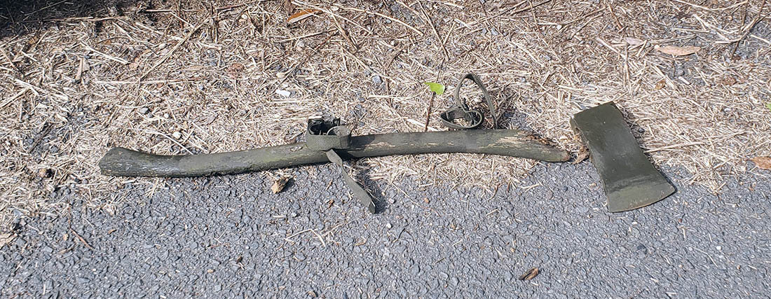 今日は、タイヤにスプレーするだけのタイヤスプレーも持ってきた。経年劣化でパイオニアツールの斧が
