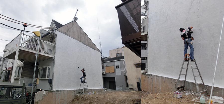 壁の上部分の塗りは、隣の家の建築の時に足場を組むだろうから?登らせてもらう予定にしました。