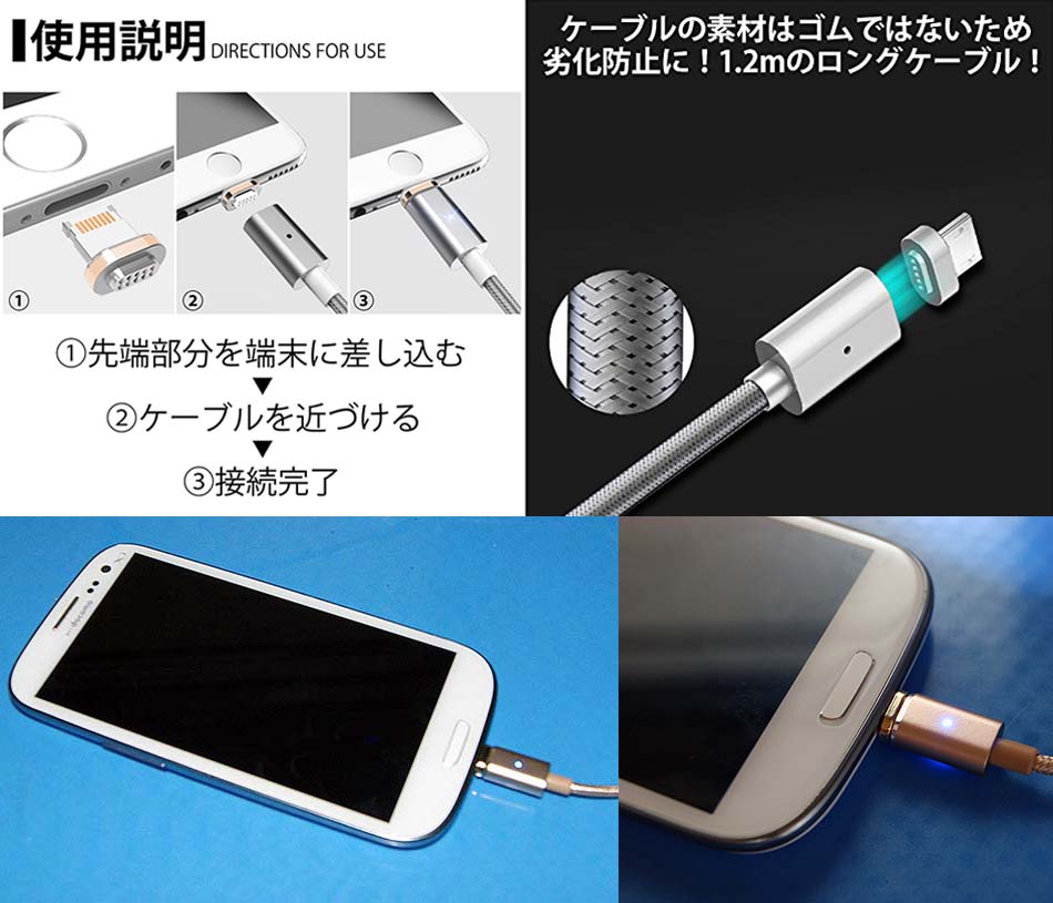 2017/9/5 先日、amazonでマグネット式の充電・通信ケーブルを購入した。安物より少し高級だったが、調子も良く90日間保証、そしてメールによる対応も 大変素早く良い店であった。それにより追加でもう一本購入した。本日また二本注文してしまった・・(笑)
