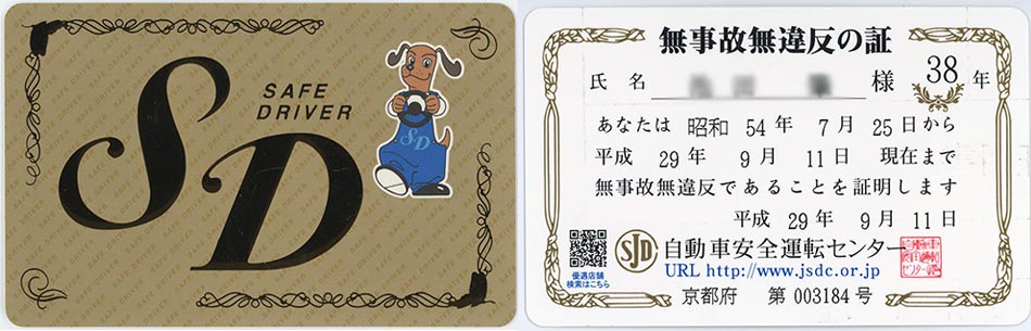 今回、届いた無事故無違反の証を見たら何の因果化しらないけれど29年9月11日現在・・・