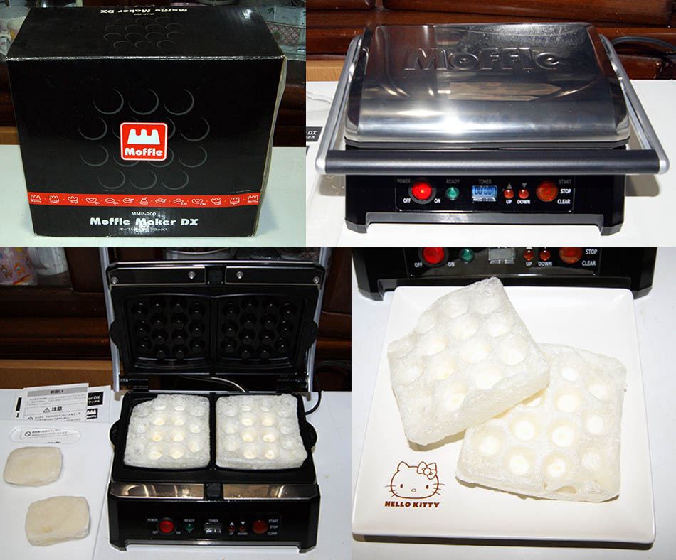 2018年3月29日(木)ちょっと変わった物を入手しました。モッフルメーカーデラックス MMP-200です。 これは切り餅をワッフル風に焼く機械ですが、半信半疑で正月にもらった切り餅を焼いてみた。 出来上がり、実に素晴らしい。バターを付けて食ってみた。食感もフワフワもちもちで最高。 ある意味、いろいろな料理に使えそうだと思った。
