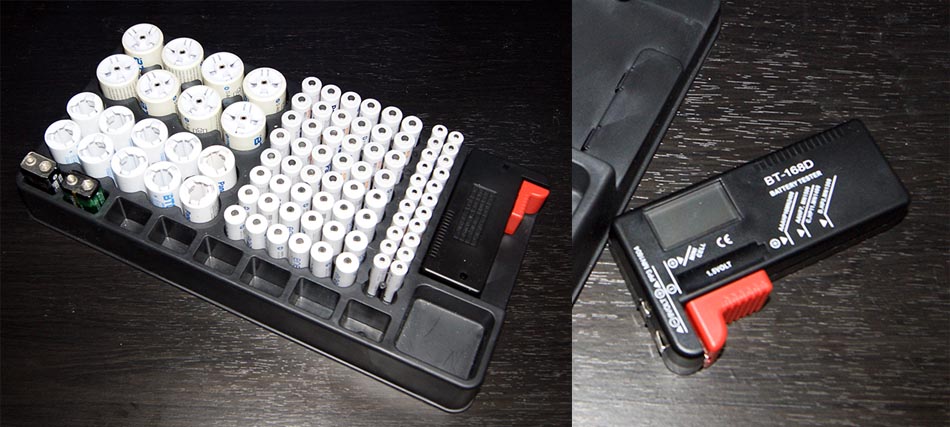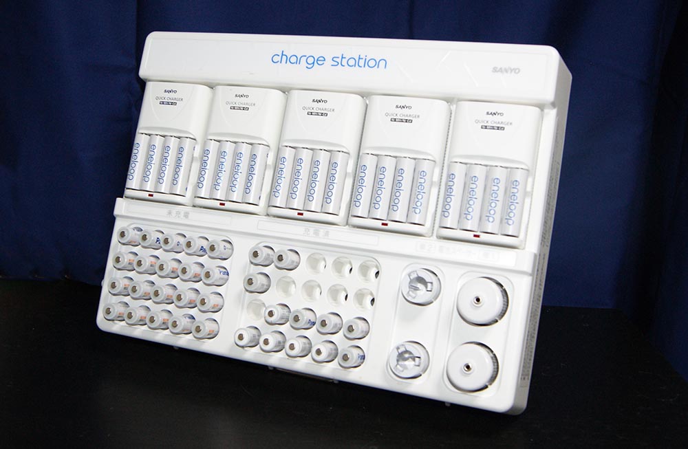 SANYO charge stationが見つからなかったのでamazonで先に注文していた電池整理ができるHoomya 電池ケース 電池ストッカー 乾電池収納ホルダー ボタン電池 四角電池 単1 単2 単3 単4 合計110個 取り外し可能電池計測チェッカー付き