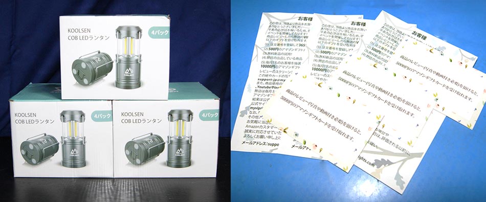 これはオマケ画像、つい最近amazonより激安で売られていたLEDランタン2個セットと4個セット、買ったのは同時じゃないけど