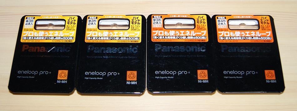 最初が、プロも使うエネループ ハイエンドモデルの単三8本と単四2本購入。そしてこれで最後と決めた?
