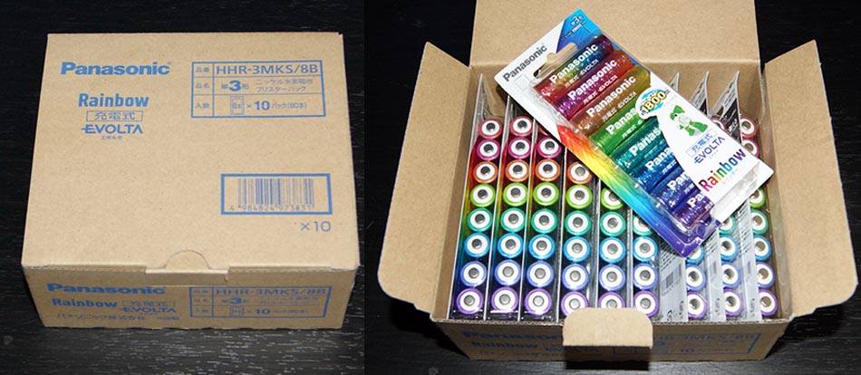 Panasonic Rainbow 充電式 EVOLTA 箱買い。8X10パック(80本)・・