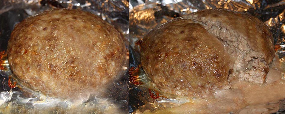 ことのほか、上手く焼けた。ハンバーグも丸く膨らみ、中から肉汁が出てきた。