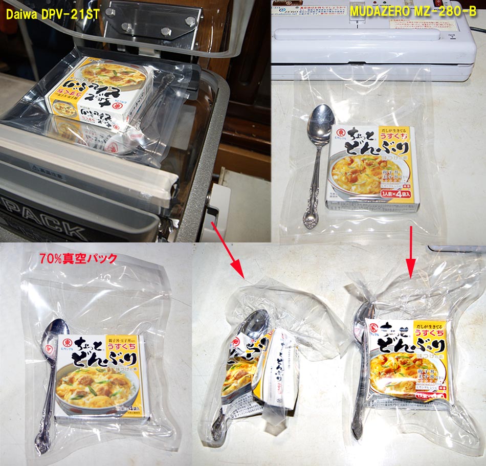 東マルのちょっとどんぶりとスプーンを真空パックしてみました。