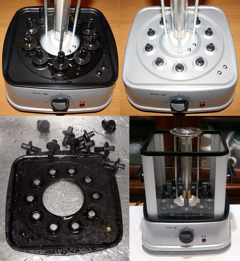 独り焼き鳥終了。黒色のドリッププレートとドリップカップを洗う、ガラスカバーも洗っておけばOKです。