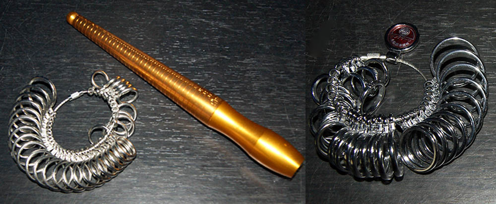 指のサイズは今までの指輪ゲージで分かるが、伸ばした後のサイズや家で見つけた指輪のサイズを知るためには、