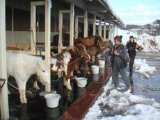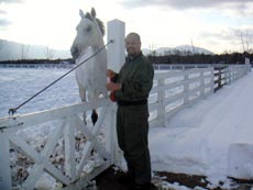 平成18年12月31日晴れ、蒜山高原へ行ってみた・・・シーズンオフで何もかも休み、牧場も午後2時で終了・・・ でも奥へ行ってみると馬に人参を食べさせることができる処があり!ワンカップ100円だったのでやってみました。 馬に近づくと前足で地面をバカバカ叩いてエサをくれってねだります。近くによるとあまりに大きな顔に驚いてしまいました。