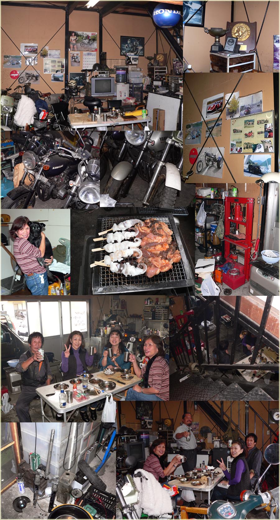 知人であるジープ乗りの杉浦氏の店(バイク店)に行き、そこで焼肉をする事にした。