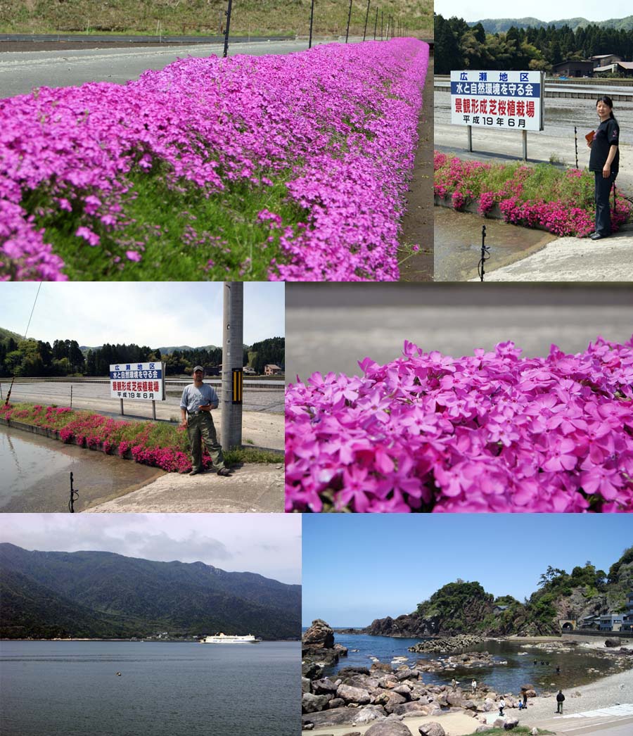 今津を越えて福井県へ行く事にした。途中綺麗な花が見えたので記念撮影、そして海の見える休憩場所でトイレ休憩を