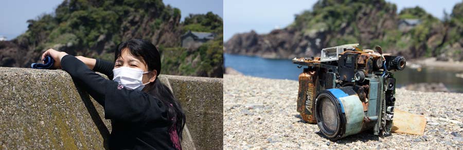 絞り優先撮影で・・・・右は、浜に落ちていた使い捨てカメラの残骸と思われます。ちょっと変った被写体で