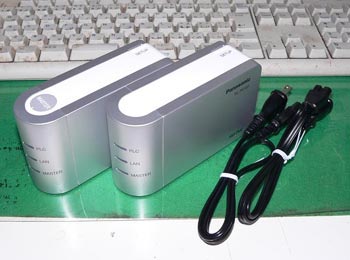 | 今まで、ヨメはん用のノートパソコン(HP Compaq Business Notebook nx9005 モバイルAMD Athlon XP-M プロセッサ2500+ メモリは標準256MB)は1階にあり、無線LANでインターネットをしていました。ところが 54Mbpsの通信でも、やっぱり無線は、速度も落ち、よく途切れたりしていました。 そこで昨日、京都寺町の量販店でPanasonic BL-PA100KT(電源コンセントを使ったLAN技術)PLCアダプターを 購入して取り付けました。東京などでは安い店もあるかもしれませんが送料もかかるのでこちらで購入しました。 ちなみに価格は、セットで18,800円でした。 | ||