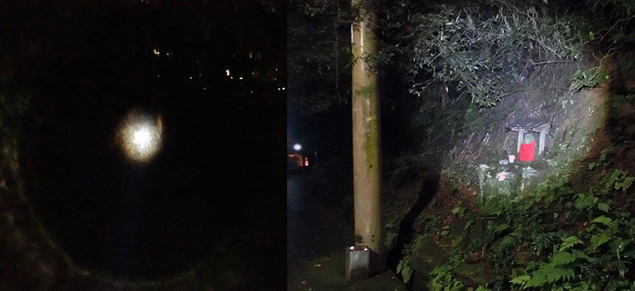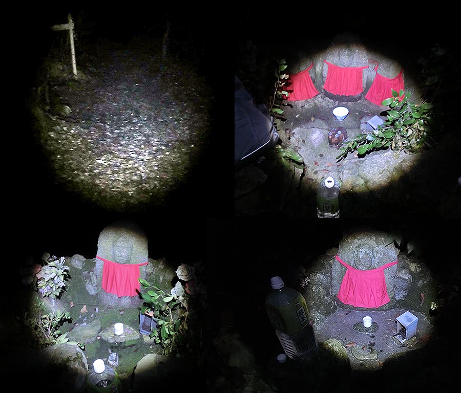 何とか懐中電灯で歩く事ができたが・・そして一つ目のお地蔵さんをお参りして