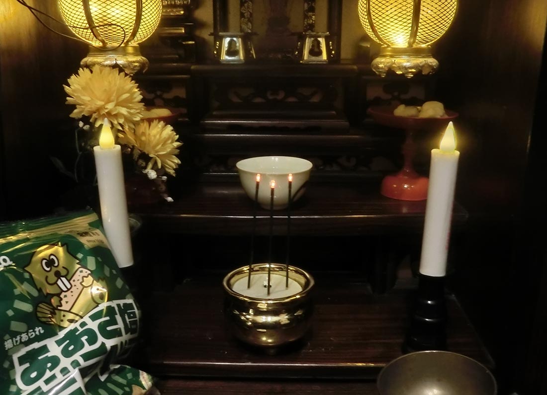家の小さな仏壇には、普段安全の為に、ダイソーのLED蝋燭とLED線香香炉を使用しておりました。しかしあまりにも