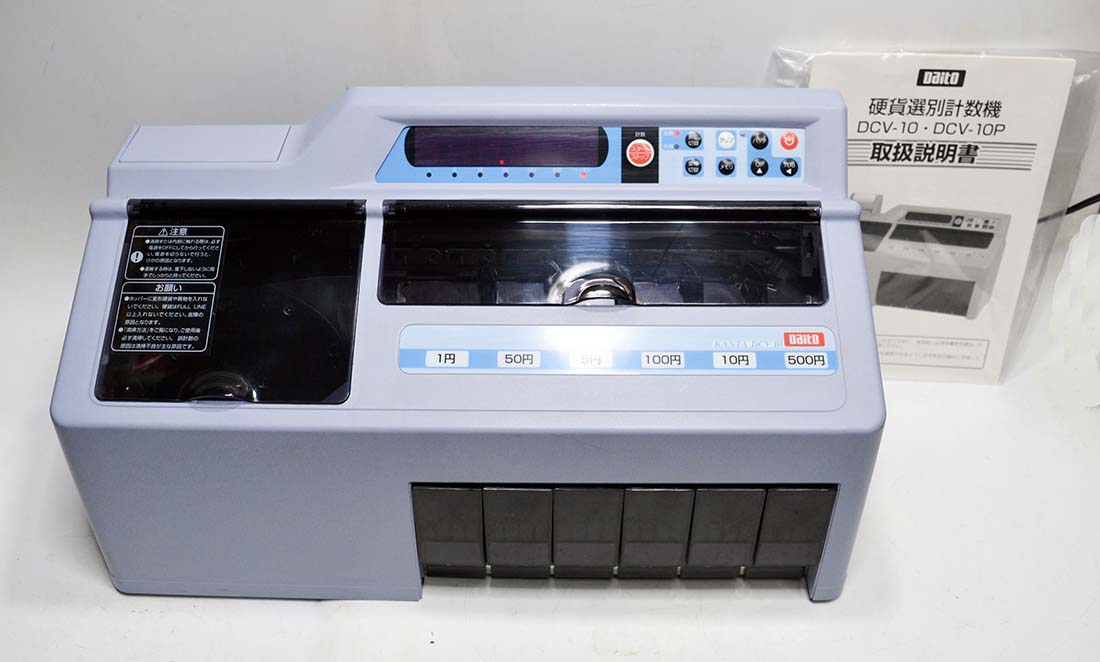実家の倉庫で見つけて持って帰って来ました。Daito DCV-10 硬貨選別計数機です。これは以前店で使うために購入して数回使用して
