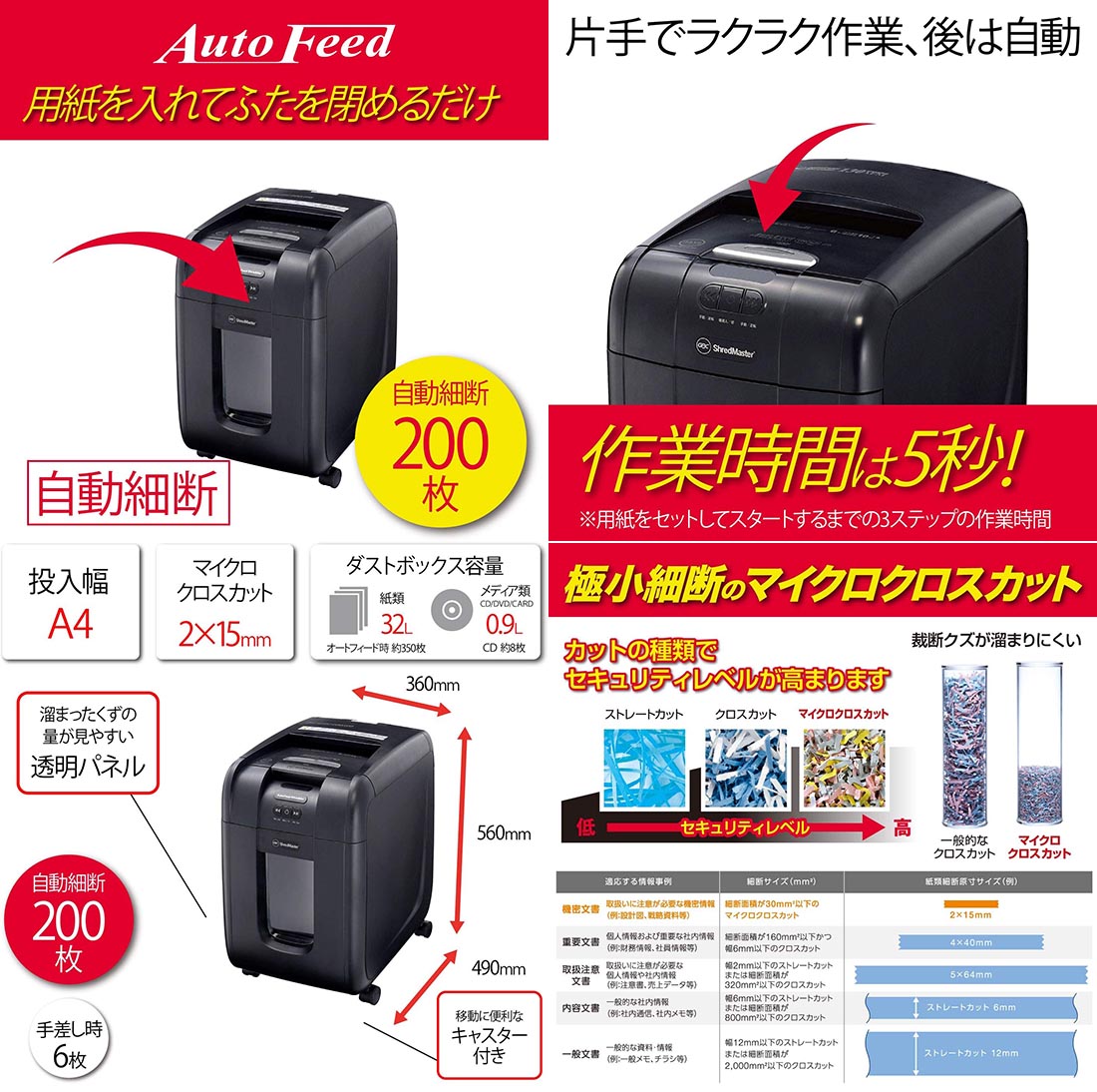オートフィード時約350枚収容 マイクロクロスカット オートフィードシュレッダ マイクロ GCS200AFM-B ブラック。何故これを今
