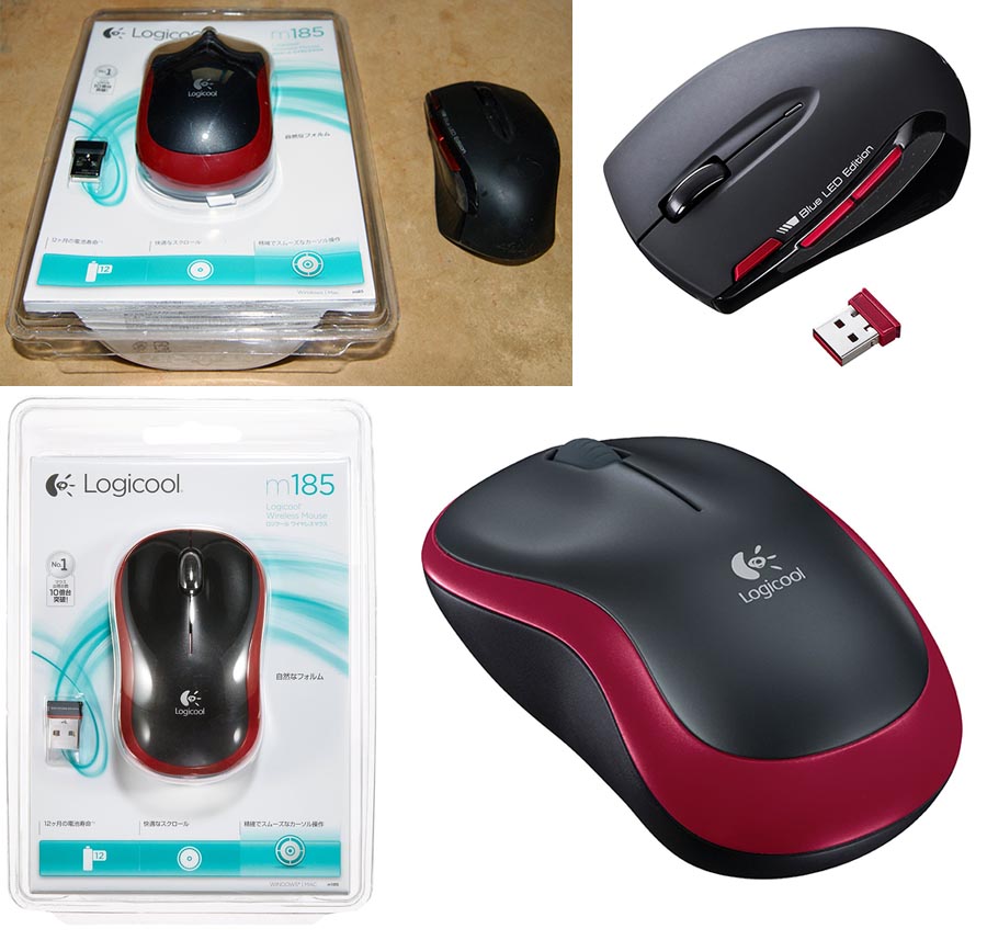 サンワサプライ ワイヤレスマウス ブルーLED ブルーLED ブラック×レッド MA-WBL26BKR(画像上の右)