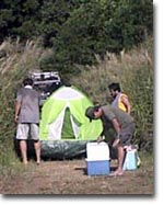 ■今回の参加人数は京都から5人、神戸から2人の合計7人でした。 午前中は、ものすごく良い天気で風がここち良いキャンプには最高の 日和と思ったのですが・・・