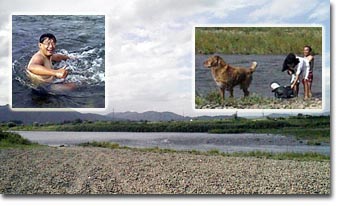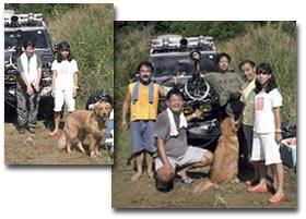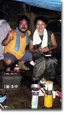 ■左上は神戸から参加のニックネーム不良です。水泳部出身、身長188cm、体重100Kg以上。右上は当方の会社の先輩、栗田氏と娘のあっちゃんそれと愛犬デュオンです。