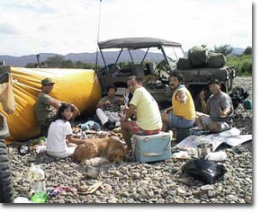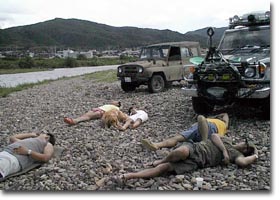 ■今回も京都ジープクラブ会員の杉浦氏(中央奥)が用意してくれた 旨い焼肉でみんなで乾杯!!