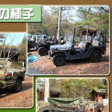 | 今年は、今までに無い素晴らしい天気で大変暖かかったせいもあったのか? 沢山の人が参加していました。この後も何台か到着していましたが当方らは、宴会中に つき撮影していませんので悪しからず・・・当方足痛の為ロッジ付近にいたもので色々な人に 会えるはずの参加が会えずじまいでした。実に残念!!関西軍装備研究会の人たちも用事で 参加できず?連絡将校さんのみ掲載!!ありがとうございました。みなさんに宜しくお伝え下さい。 |