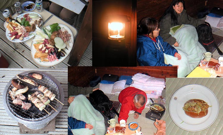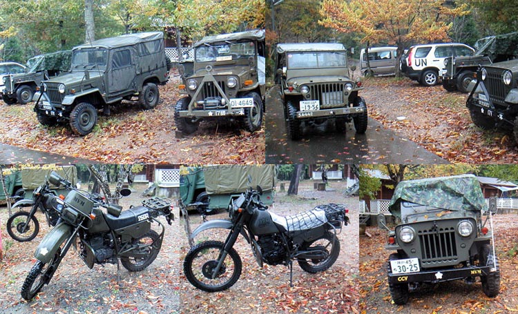 当方関係の画像ですが、今回は、当方、ヨメ、当方会社関係の人二人、ヨメの友人、子供、犬の合計大人5人、子供1人、犬1頭で参加 しました。別段ミリタリーを意識せずキャンプを楽しみました。あいにく雨ばかりでしたがロッジの中でゆっくり過ごしました。今回は、並んだロッジを 借りることが出来なかったので実質、2家族で別々にキャンプをしたような感じでした。