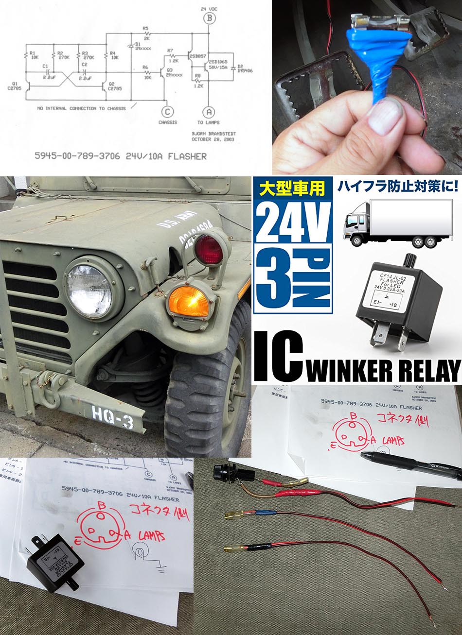 24Vの汎用フラッシャーリレーを購入した。1600円弱、後は家にあるものを使って。いろいろ実験も含めてやりました。