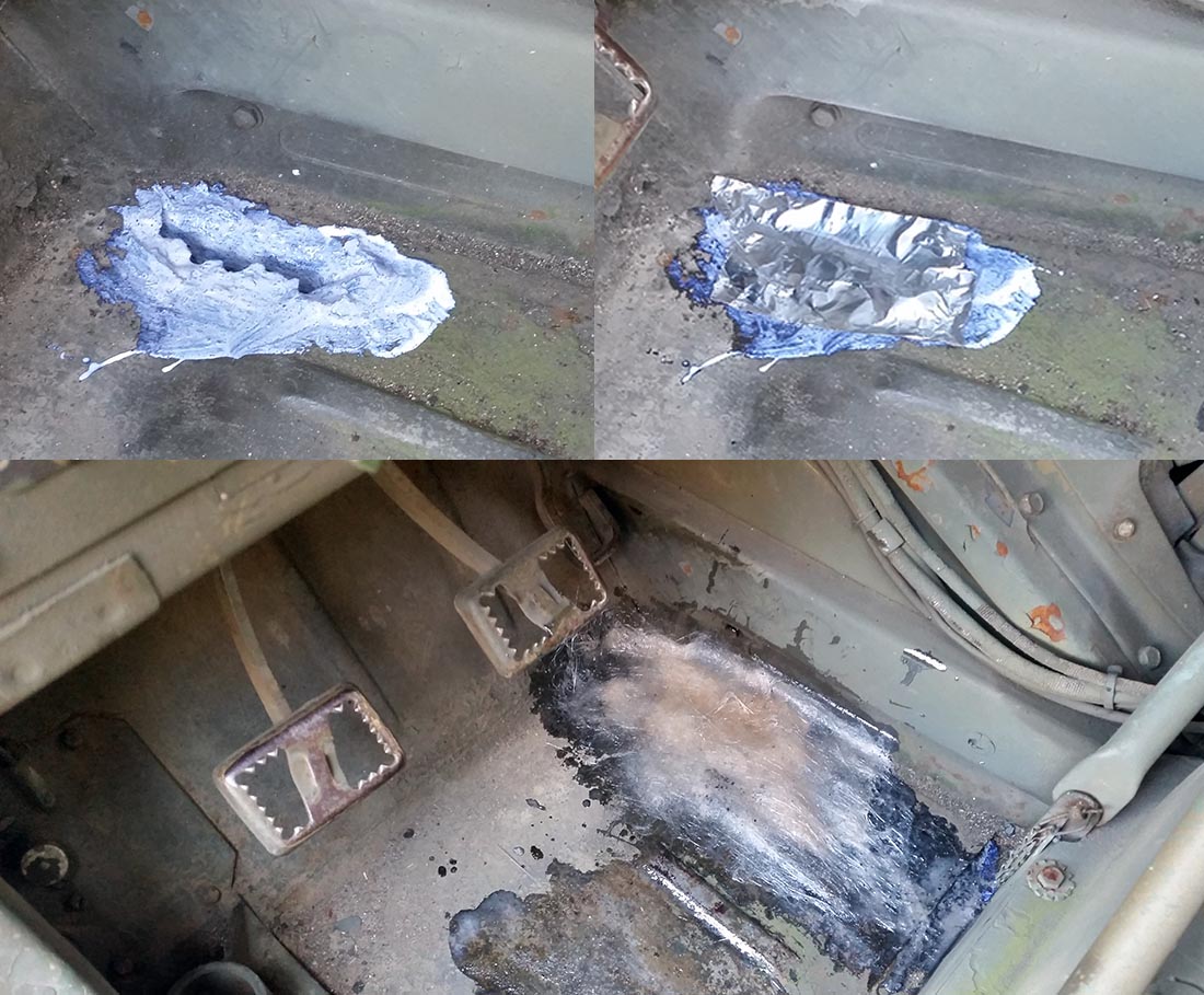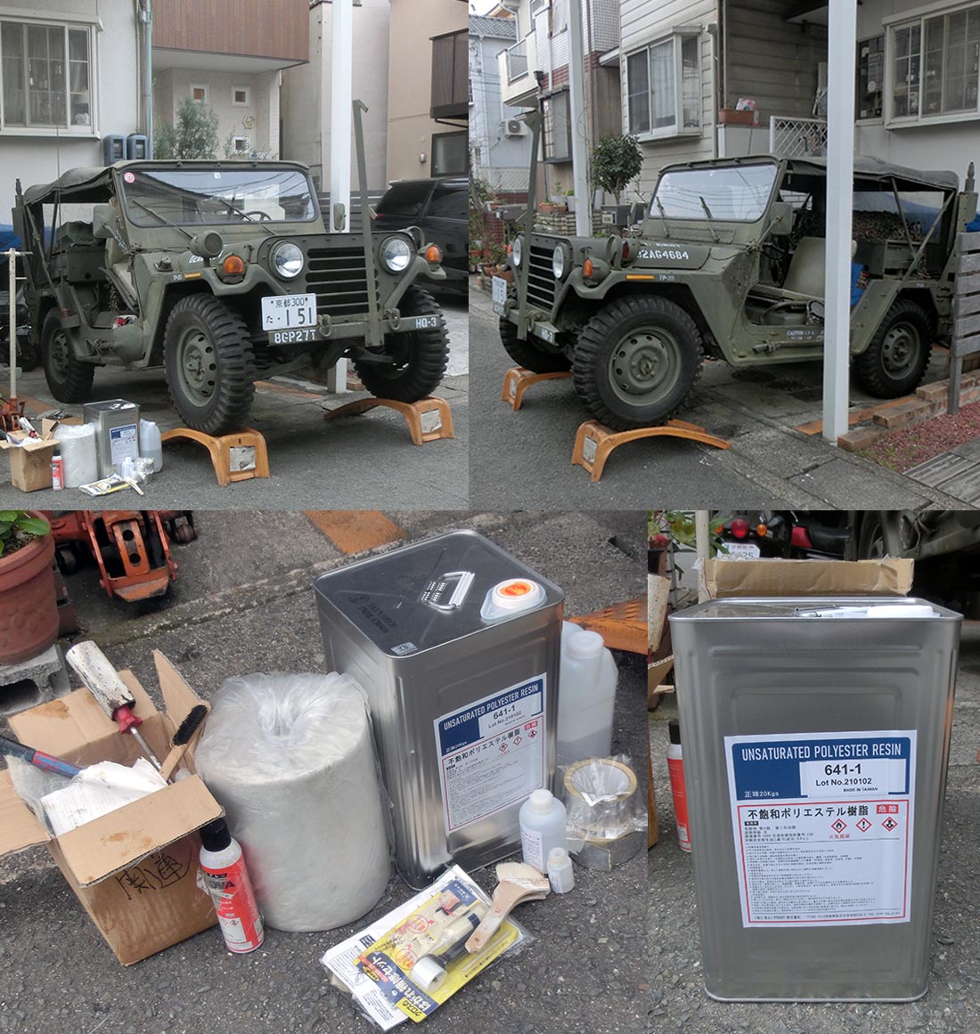 先日、M151A2の下まわりに錆穴発見、FRPで補修・・・適当にあるもので、しかし長年放置の