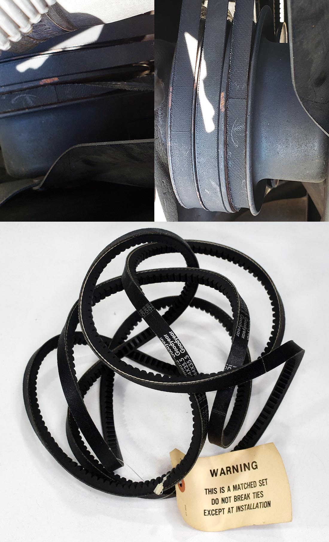 一番エンジン側がだいぶ弱ってたるんでいる。真ん中は結構しっかりしている。ファン側は、ベルトの山が何もなくなって
