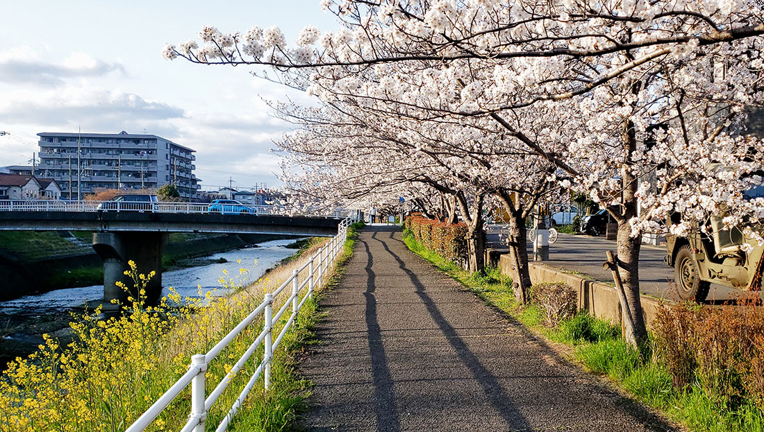 今日最後の場所、山科川遊歩道のそばの道です。この前に業務スーパー山科店で買い物をしましたが、動画にはアップしていますが