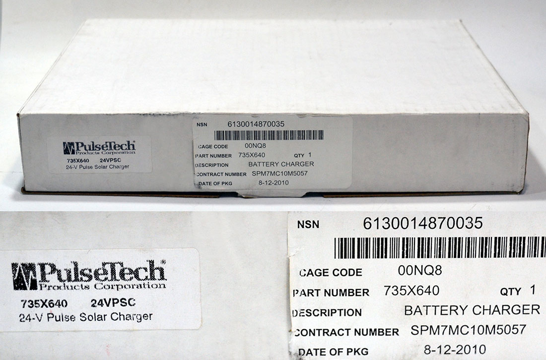 もう数年前に米軍沖縄基地放出品を入手したのですが、先日、実家の掃除で見つけたので掲載しました。 このソーラー充電器は、アメリカのPulseTech社製のものです。米軍車両用に製造しているようです。 3枚のソーラー充電器は、すべて同じ規格なのですが、見た目ソーラーパネルが少しづつ違うので、それぞれの パネルを並べてみました。形式からすると、一番下の画像の真ん中、Part#735x640 24V Pulse Solar Charger 7.2 Watt のようです。