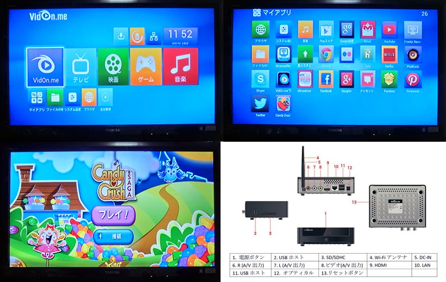 本体横にメモリカードを差し込めば画像などもテレビで見たりできる。ちょっとおもしろいんじゃない?って感じの品物です。無線WiFiも出来ますしね。でも当方は有線LANで