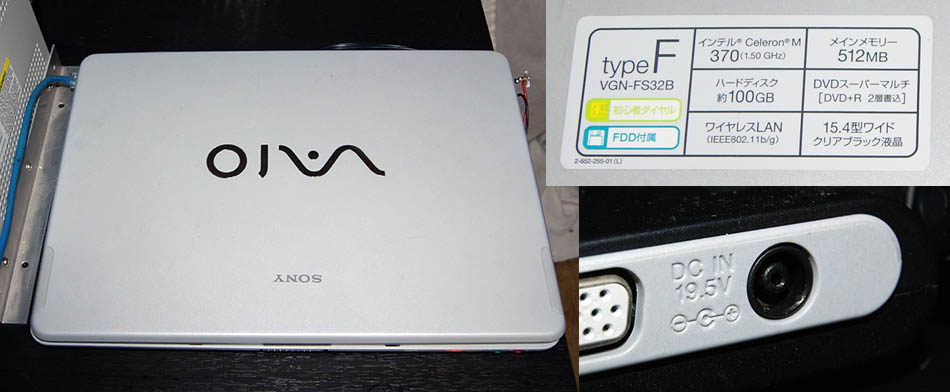 2018年11月24日(土)昨日、拾ってきたSONY VAIO(MODEL PCG-7D2N)電源アダプタ無し。