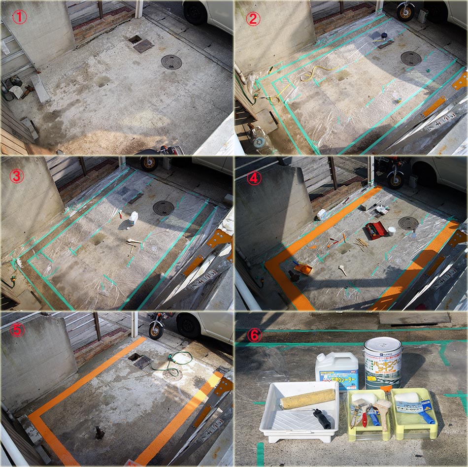 Cパーキングライン専用の水性ペイントをローラーとハケで塗った。