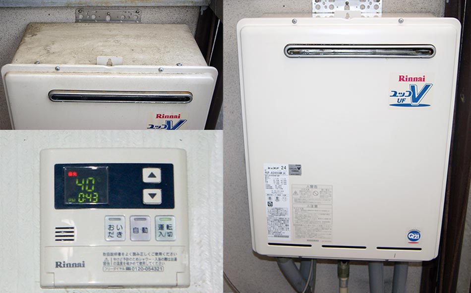 1階へ降りて、以前付いていたリモコンを取り付けたら動作OK,風呂のリモコンもチェック共にOK,手間かかったな〜 とりあえず無線機部屋を通りたくなかったのに・・・行く事が無いのに裏のベランダまで行ったのでついでに以前 隣の家が解体されるときに安全のために付けていた防犯カメラ2台を外して、左画像のように給湯器もホコリで汚れていたので 磨いてやりました。まあこれで当分OKでしょう?リモコンの予備もあるし、同じ症状ならまず見る場所もわかったし。 でもまだ今日も明日もピンクの粉掃除はつづくのであった。 |