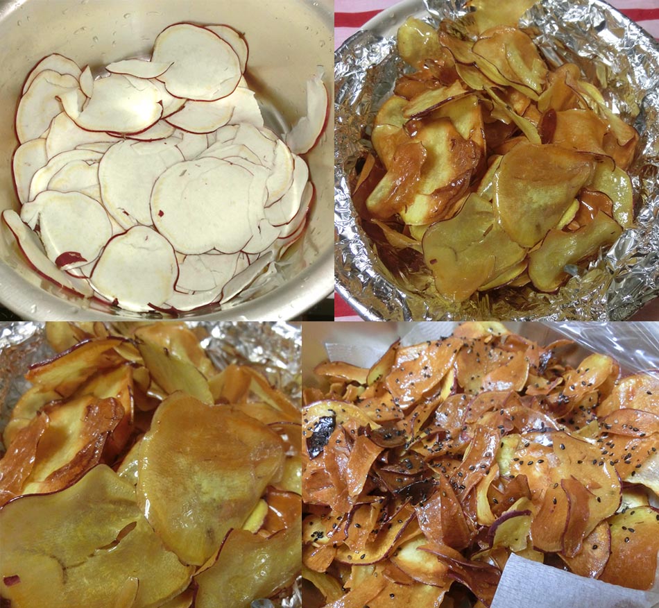 次にだいぶ以前に貰ったサツマイモがあったのでスライスして、揚げてから三温糖を溶かしたタレをかけてみた。