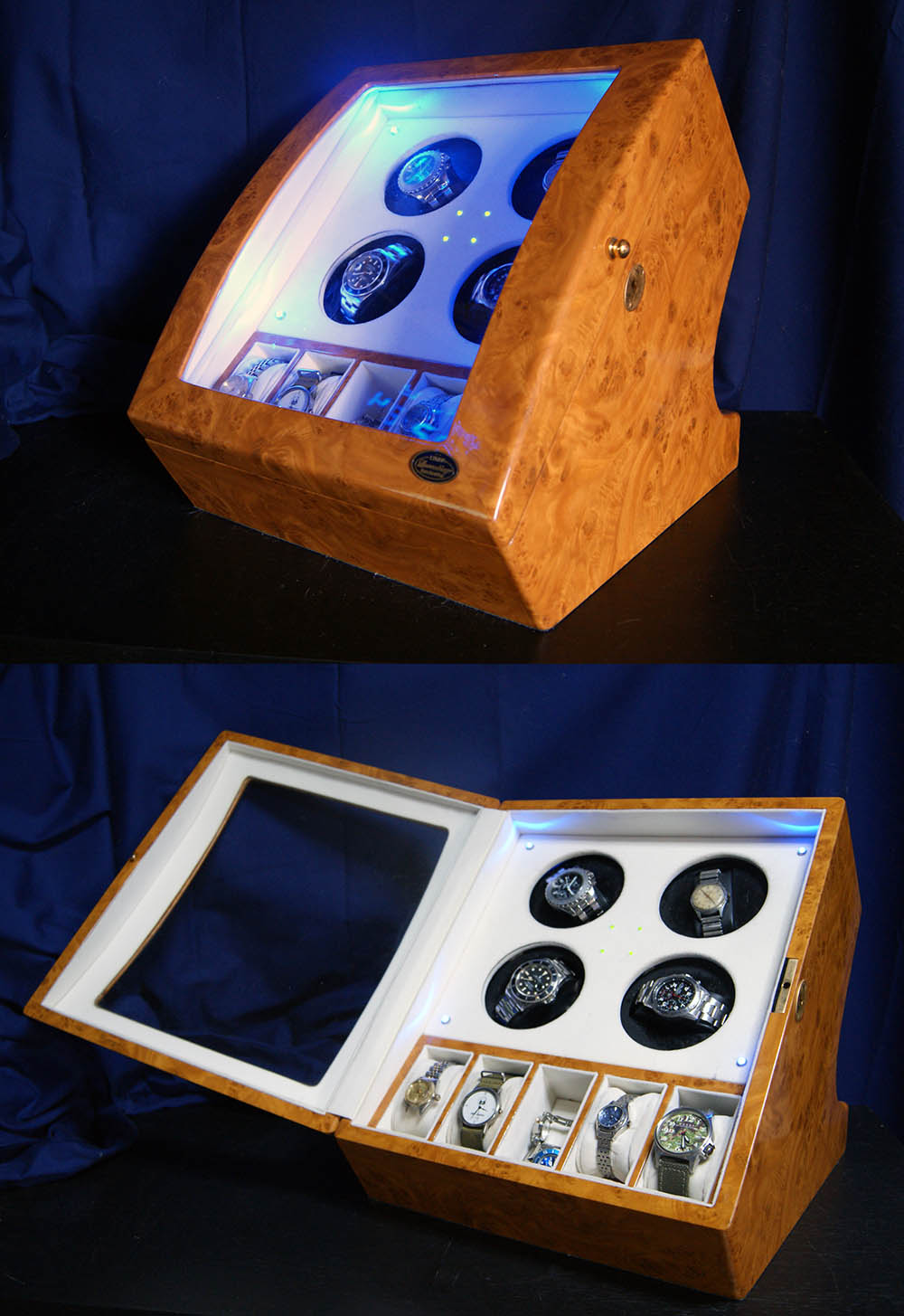 高級品なLUHW ローテンシュラガー 腕時計ワインダー 4連 ワインディングマシーンのジャンクが出ていたので落札してみた。電源接触不良や、回らなかったり、LEDが点かなかったり・・