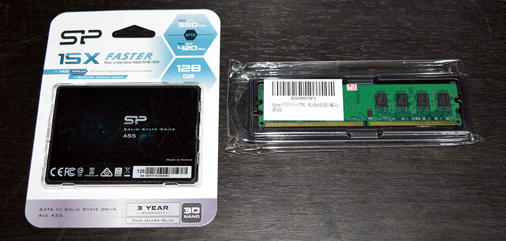 とりあえずメモリ増設、Hynix デスクトップPC用 メモリ PC2-6400(DDR2-800) 2GB×2枚 [Side3][並行輸入]を追加しました。(2GB → 6GB)