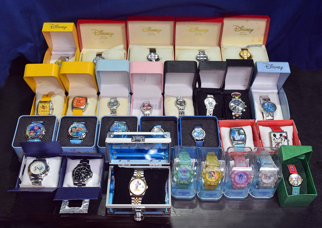 2021/10/17 先日何気にヤフオクでディズニー腕時計まとめてって言うようなやつに入札していたら落札してしまった。 とりあえず激安で・・・(笑)長年新品保管品により全部電池切れ・・でも当方宅には各種ボタン電池1000個はストックしているので 確実に合う電池はある。そして数個動くようにして、いつも世話になっている、昔からの友人のおばはんにプレゼントした。 好きなのを選べ、動くようにして納品してやるからってね(笑)