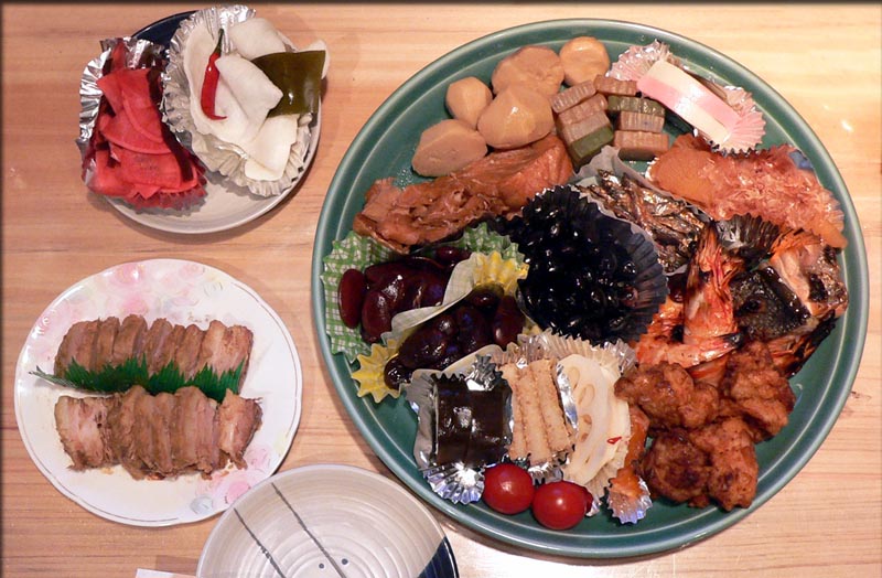 1月1日(金)年が2010に変わった。昨日から年越し忘年会に呼んでもらって会社の先輩宅で年を越した。奥さんの手料理が大変美味い。 年越しソバも頂き、夜中に帰宅・・・帰りにオセチ料理を土産に頂いたので今日、朝から頂いている。頂く前に撮影をしてアップしてみた。 言うまでも無く全て手料理。無添加・・さすが仕出し屋の娘さんだけあって料理もプロ並みである。 オセチのほかにも28日に臼でついた餅も土産に貰った。毎年呼んで頂いて大変有り難い事である。もう20年以上になるだろうか?