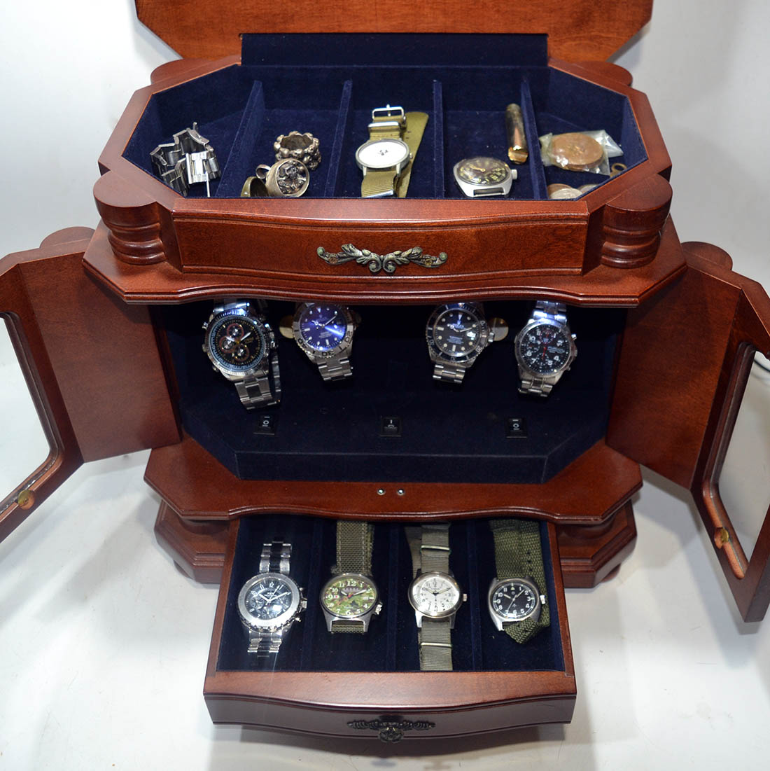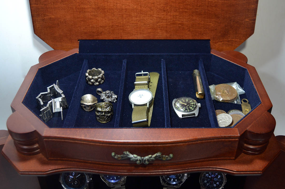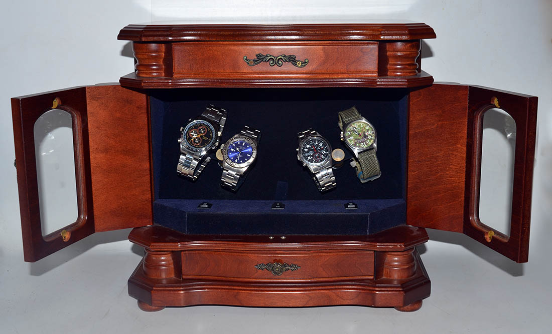 結局、インテリア時計収納庫になっていた。先日たまたまヤフオクでこのワインダー付きのケースを発見、落札した。