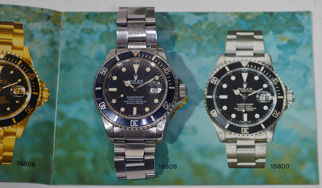 この当時のモデルROLEX SUBMARINER 16800は、蓄光塗料の●の部分に外枠の無いタイプです。