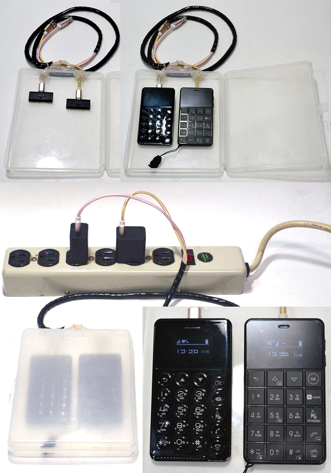 家に有ったポリケースを改造して、NichePhone-SとS+を並べて充電できる充電台(ケース)を作ってみた。