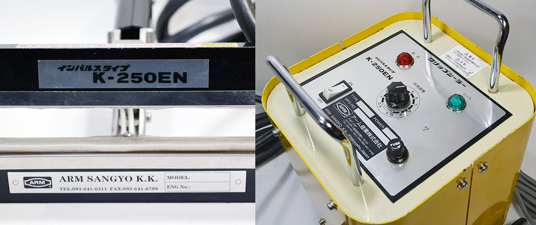この機会は、アーム産業株式会社のクリップシーラー、インパルスタイプ K-250ENと言う業務用の機械です。